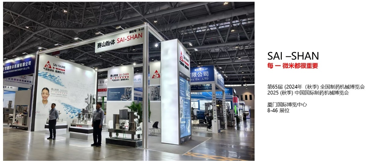 第65屆(2024年秋季)全國制藥機械博覽會暨2024(秋季)中國國際制藥機械博覽會于11月17-19號在美麗的廈門舉辦。海內外1500多家制藥裝備生產及服務企業與數萬醫藥行業同仁將再度相聚青廈門國際博覽中心,共襄行業發展盛舉! 賽山粉體展位號 :8-46展位